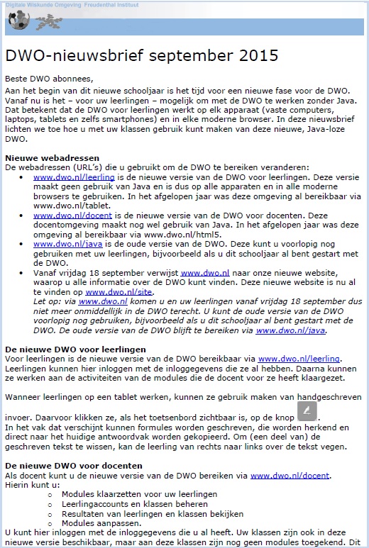 As from now students can work in the DME without Java. (News letter in Dutch.)