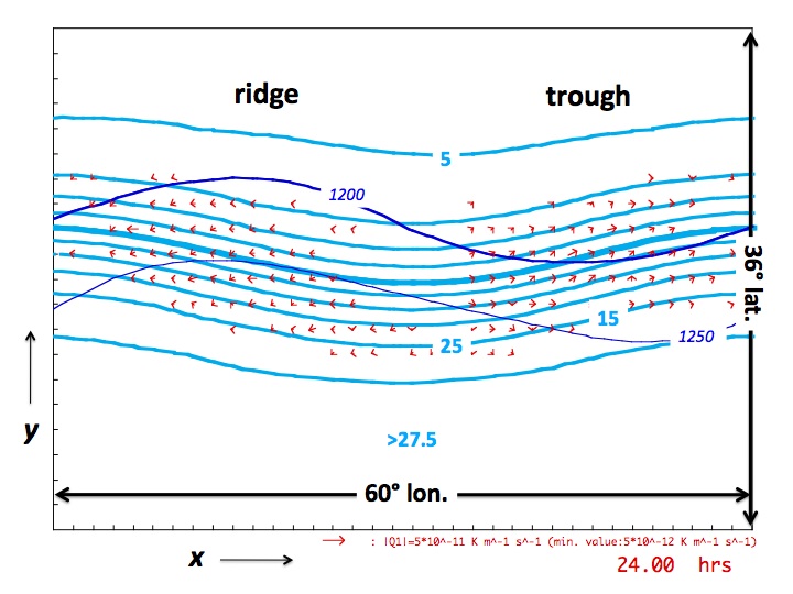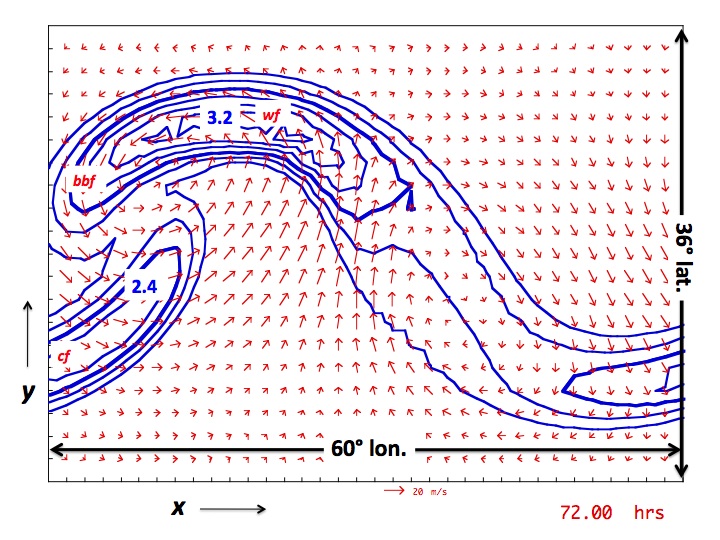 longitude at 45° latitude). This wave grows into a realistic cyclone